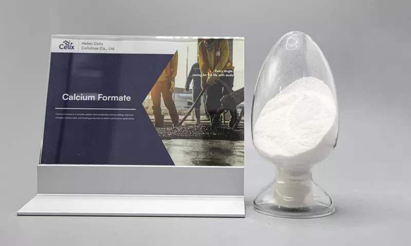 Celix canxi formate là một loại bột tinh thể màu trắng có tính lưu động tuyệt vời, hút ẩm nhẹ, trung tính và không độc hại; nó hòa tan tốt trong nước và được sử dụng rộng rãi như một chất kết tụ vữa. Là chất kết tụ mới hiệu suất cao, celix Calcium formate mang lại lợi ích kép: tăng tốc độ làm cứng bê tông, tăng cường độ bền sớm và ngăn ngừa đông máu vữa chậm trong quá trình xây dựng mùa đông hoặc ở nhiệt độ thấp, điều kiện độ ẩm thấp.
